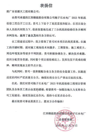 之后,周安又辗转四川、江西、湖南各地开展检修项目。在新政电站和沙溪电站,他严于律己,自觉维护公司形象;在抱子石水电厂,他以大局为重,妥善处理业主需求,收获项目表扬信;在湘祁水电站,他坚守至春节前才完成任务,展现出高度的敬业精神,得到了公司和业主一致的认可。