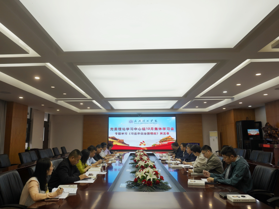 2025年10月17日,武汉晴川学院召开党委理论学习中心组10月集体学习会,专题学习《习近平谈治国理政》第五卷。党委书记翟细春主持学习并作总结讲话。马克思主义学院院长刘启春作专题导学。全体党委委员、各学院党总支(副)书记及党委组织部、宣传部、学生工作部等相关职能部门负责人参加学习。
