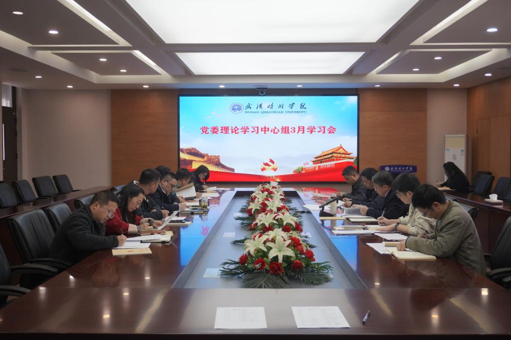 3月19日,武汉晴川学院召开党委理论学习中心组2026年3月集体学习(扩大)会,专题学习《党委(党组)意识形态工作责任制实施办法》,开展树立和践行正确政绩观学习教育;学习2026年全国两会精神;学习省委统一战线工作领导小组办公室印发的《关于新形势下加强抵御和防范非法宗教活动向高校渗透工作的实施意见》;学习习近平总书记关于河南南阳市方城县独树镇英才学校宿舍楼发生火灾事故作出的重要指示批示精神。党委书记翟细春、党委副书记向巍、纪委书记罗宏运等校领导,各学院党总支(副)书记等党委成员参加。党委书记翟细春主持学习并作总结讲话。