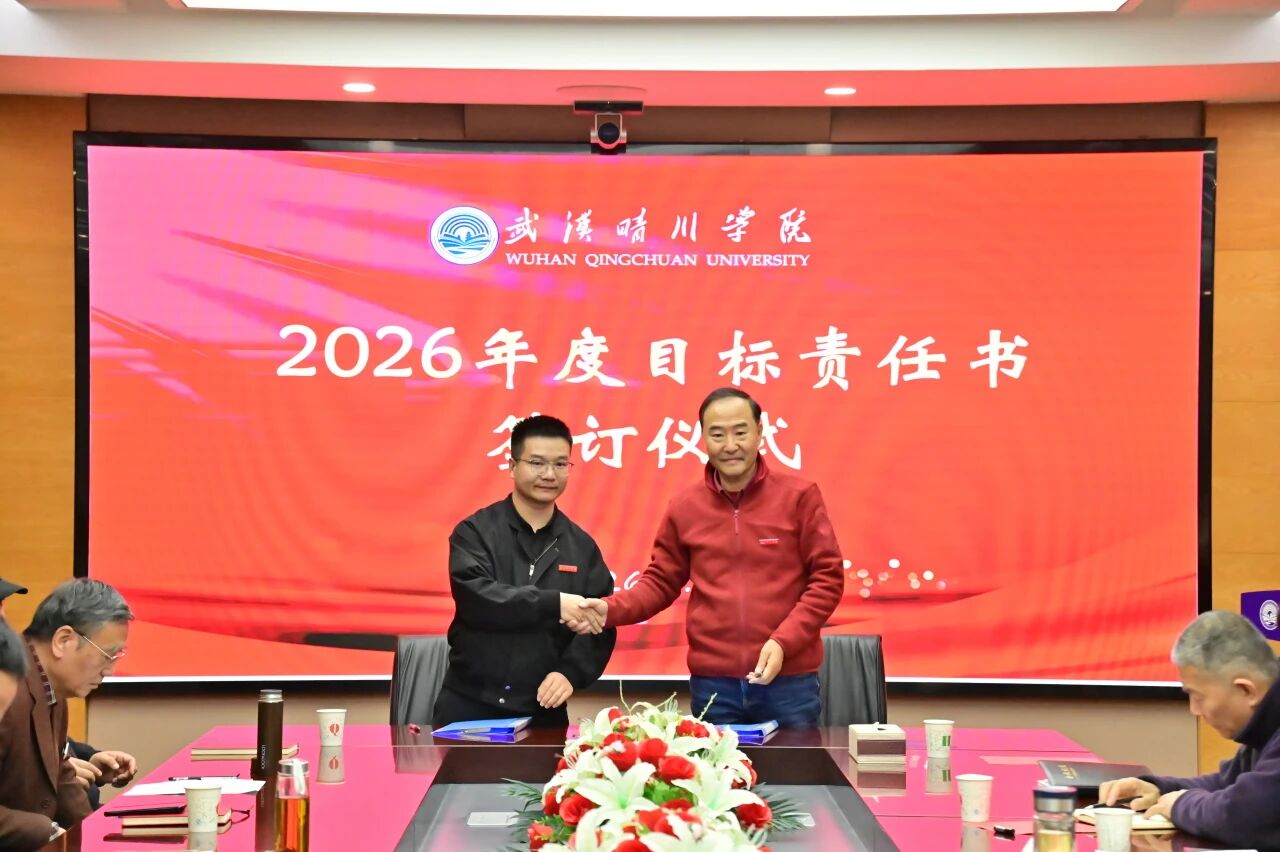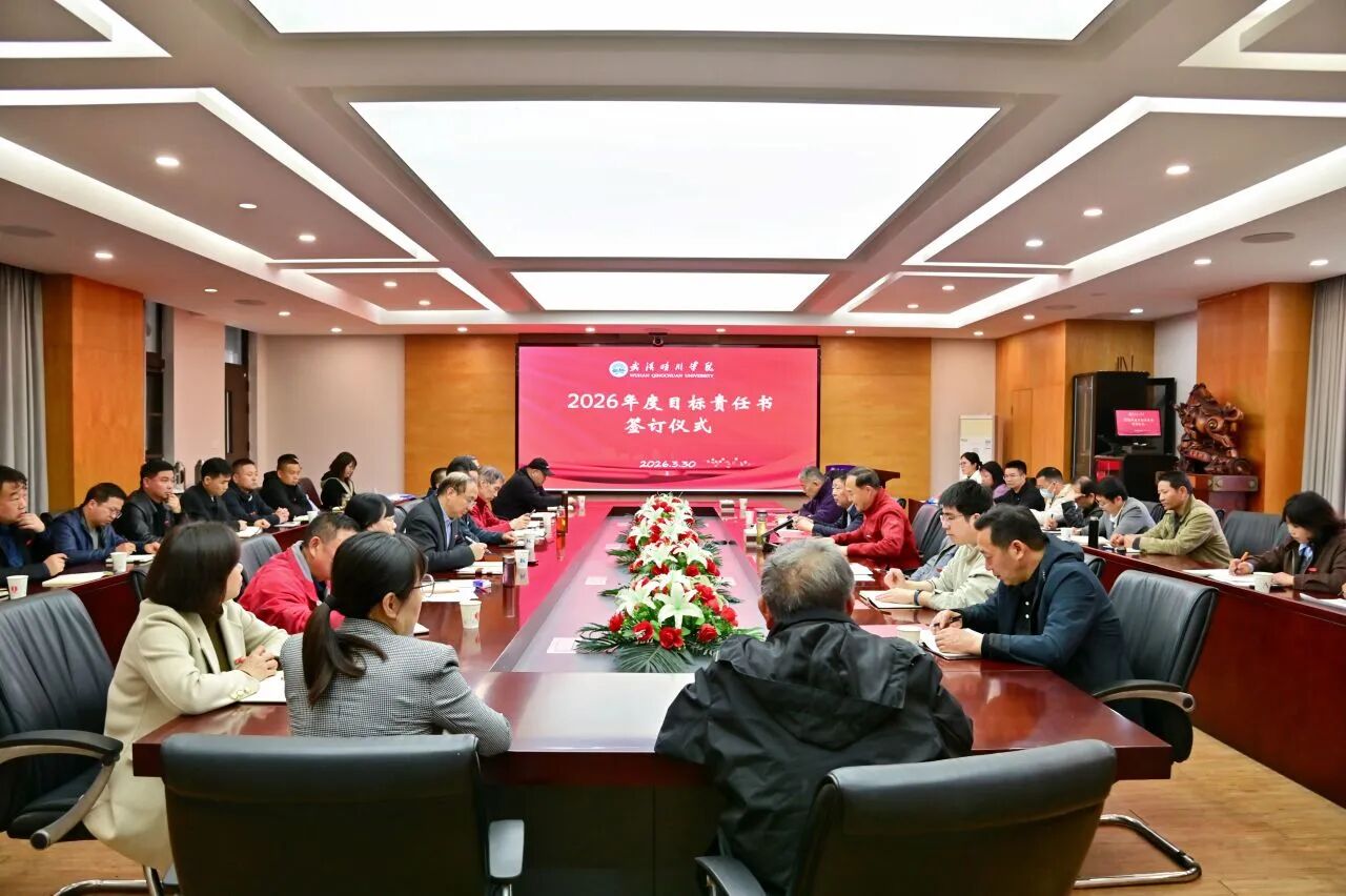 锚定目标启新程,乘势而上谱新篇。3月30日下午,武汉晴川学院2026年度目标责任书签订仪式顺利举行。董事长、校长汪彬教授出席并讲话,全体校领导、各二级学院(课部)院长(主任)、各职能部门负责人参加。仪式由副校长彭宇文主持。