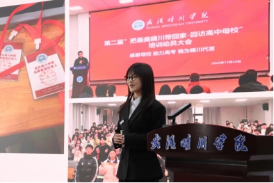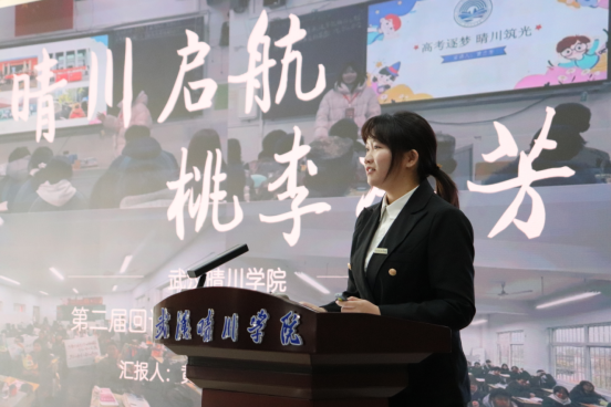黄兰芳同学以《晴川启航,桃李芬芳》为题,讲述在晴川的成长轨迹,激励学弟学妹们勇敢追梦。