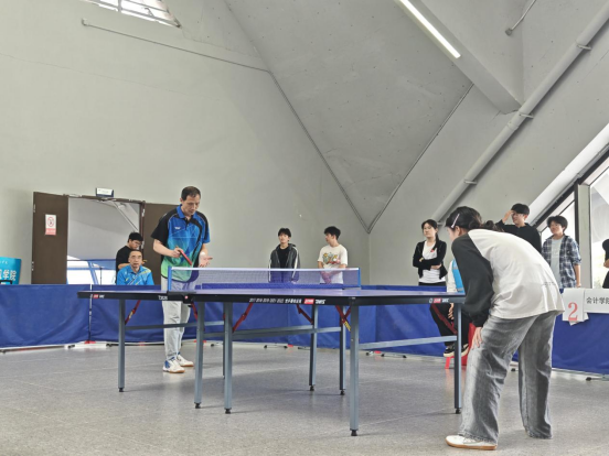 4月8日,所有赛事圆满结束后,一场别开生面的嘉宾挑战赛如期上演。副校长彭宇文与基础课部吴维宁老师组队,与冠军队伍会计学院展开切磋较量。赛场上,校领导与学子们同场竞技、其乐融融,既展现了校领导对校园体育活动的重视与支持,也进一步拉近了师生之间的距离,最终彭宇文副校长与吴维宁老师组成的嘉宾队取得挑战赛胜利。