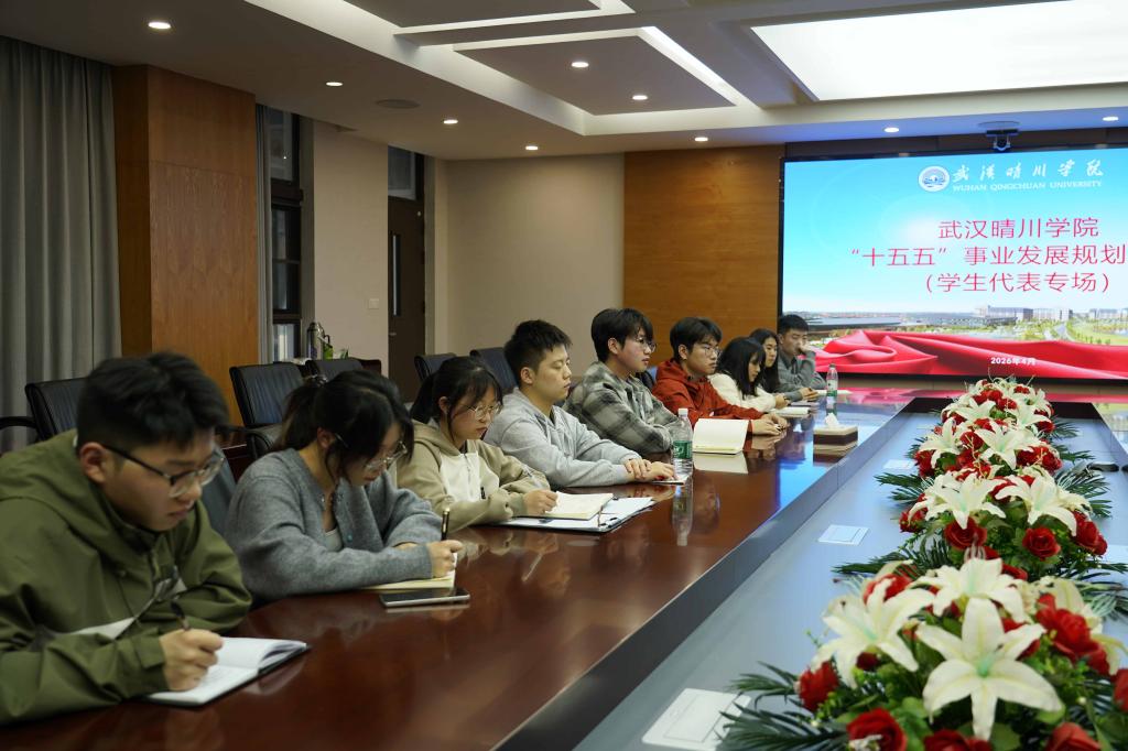 彭宇文副校长在认真听取同学们的发言后作总结讲话。他用“两个真”高度评价了同学们的发言——一是“真诚”,同学们发自内心地为学校发展和个人成长建言献策;二是“真实”,大家讲得直接、接地气,抓住了学校办学中的要害和关键问题。他指出,“十五五”这五年正是同学们从校园走向社会的关键成长期,这份规划是学校与同学们共同的规划。彭宇文强调,应用型人才培养是学校办学的核心定位,如何将“区域性、应用型、特色化”的办学定位真正落实到每一位学生身上,产生实实在在的成效,是学校“十五五”期间需要着力破解的课题。他希望同学们继续关注课程体系优化、实践教学改革、校企合作深化等关键环节,学校将逐条梳理同学们的意见和建议,充分吸纳到规划编制中。最后,他表示学校领导办公室大门随时向同学们敞开,欢迎大家随时反馈意见建议,共同推动学校高质量发展。