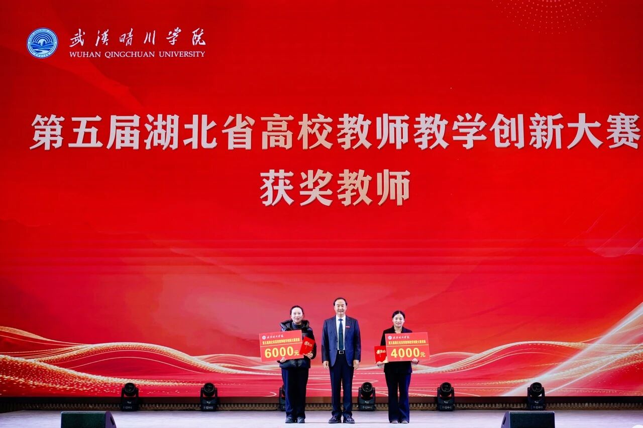 董事长、校长汪彬教授为第五届湖北省高校教师教学创新大赛获奖教师、2025年国家级一流本科课程负责人姚春荣教授团队、年度优秀科研成果获得者代表、2025年度绩效考核先进单位颁奖